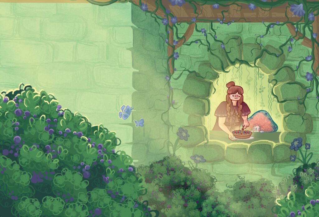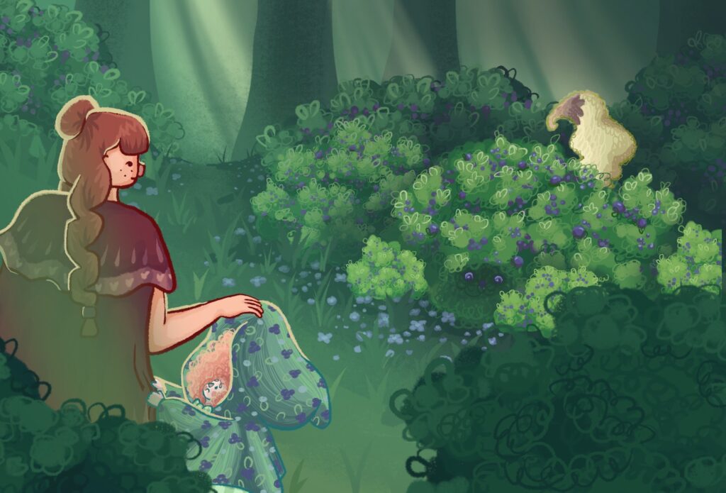 Groenmutsje gaat met Moeder op bezoek bij Oma, maar ze krijgt de kriebels van het bos. Wat voor raadselachtige dingen zouden er in dit bos verstopt zitten? Een fantasierijke draai op het sprookje van Roodkapje. Hieronder alvast een sfeerindruk van wat je mag verwachten. (Illustraties hier nog zonder tekst)